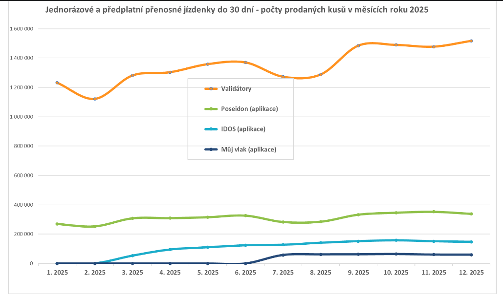 „Za rok 2025 tak bylo prodáno přes validátory a mobilní aplikace celkem 21 531 270 ks jízdenek!“, upřesnil Jiří Horský.